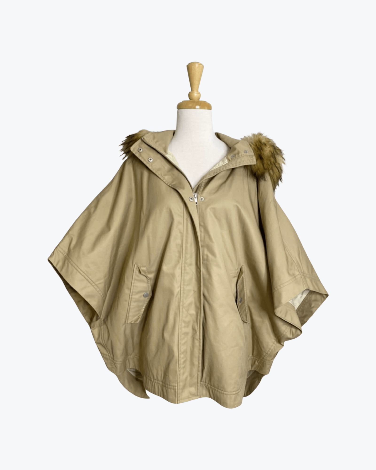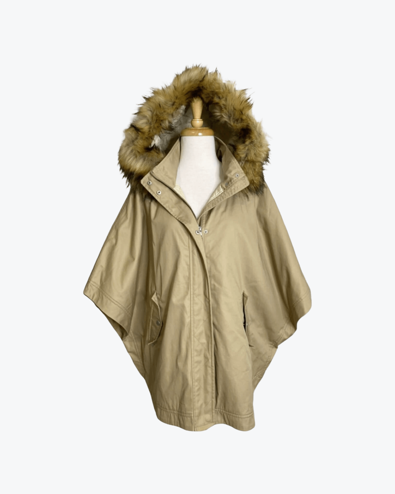 Country Road Hooded Cape Faux Fur Trim Size L